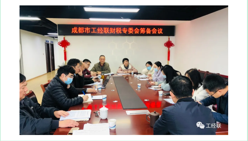 2021年11月29日,成都市工业经济联合会财税专业专委员会(下称:财税专委会)筹备会议在金牛万达广场召开,首批12家成员单位,四川中税网税务师事务所有限公司、成都中致和联合会计师事务所、四川君和天诚税务师事务所有限公司、四川德衡会计师事务所有限公司、成都政通会计师事务所(普通合伙制)、四川东升资产评估事务所、四川博道维新企业管理有限公司、四川瀛领禾石律师事务所、成都科宏达化学有限责任公司、成都智能焊接装备行业协会等单位参加了此次会议,市工经联胡庆苏秘书长及秘书处工作人员参加了此次会议。